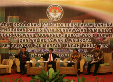 Palangkaraya, Badan Pengawas Pemilu - Setelah mendapatkan materi yang disampaikan oleh beberapa narasumber terkait penyelenggaraan Pemilu, para peserta Rapat Koordinasi Stakeholders Pendidikan Partisipatif Pengawasan Pemilihan Gubernur, Bupati, dan Walikota se-Provinsi Kalimantan Tengah Tahun 2015 merumuskan rekomendasi sebagai upaya menanggulangi permasalahan yang kerap terjadi ketika Pemilu ataupun Pilkada yang digelar di Kalimantan Tengah.