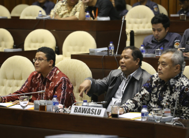 Jakarta, Badan Pengawas Pemilu – Pimpinan Badan Pengawas Pemilu Republik Indonesia (Bawaslu RI) menghadiri Rapat Dengar Pendapat (RDP) dengan Komisi II DPR RI untuk mengkonsultasikan enam Peraturan Bawaslu (Perbawaslu) terkait pelaksanaan Pemilihan Gubernur, Bupati, dan Wali Kota yang akan digelar Desember 2015.
