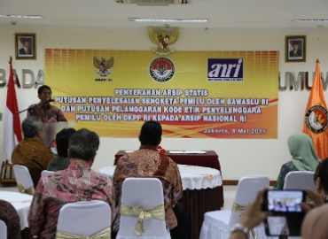Jakarta, Badan Pengawas Pemilu – Kepala Arsip Nasional Republik Indonesia (ANRI), Mustari Irawan mengapresiasi langkah Badan Pengawas Pemilu yang telah menyerahkan Arsip Statis Putusan Penyelesaian Sengketa Pemilu kepada ANRI pada Jumat (8/5). Menurut Mustari dalam melaksanakan tugas pengawasannya serta mengelola arsip pemilu, Bawaslu telah menjaga sekaligus merawat demokrasi Indonesia.