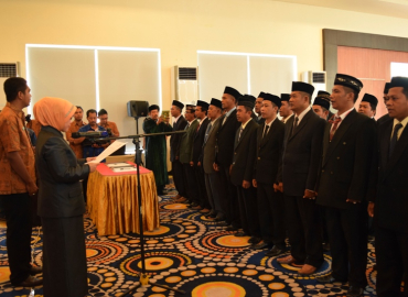 Banjarmasin, Bawaslu Kalsel - Menindaklanjuti surat edaran dari Bawaslu RI dan melaksanakan amanat Pasal 24 ayat (1) Lampiran Undang - Undang No. 1 Tahun 2015. Ketua Badan Pengawas Pemilihan Umum Provinsi Kalimantan Selatan (Bawaslu Prov), Mahyuni, S.Sos., M.AP. sekitar pukul 16:00 WITA melantik Panitia Pengawas Pemilihan Gubernur, Bupati dan Walikota (Panwaslih) untuk 13 Kabupaten/Kota, di Gedung Abdi Persada Banjarmasin, Kamis (23/4/2015).