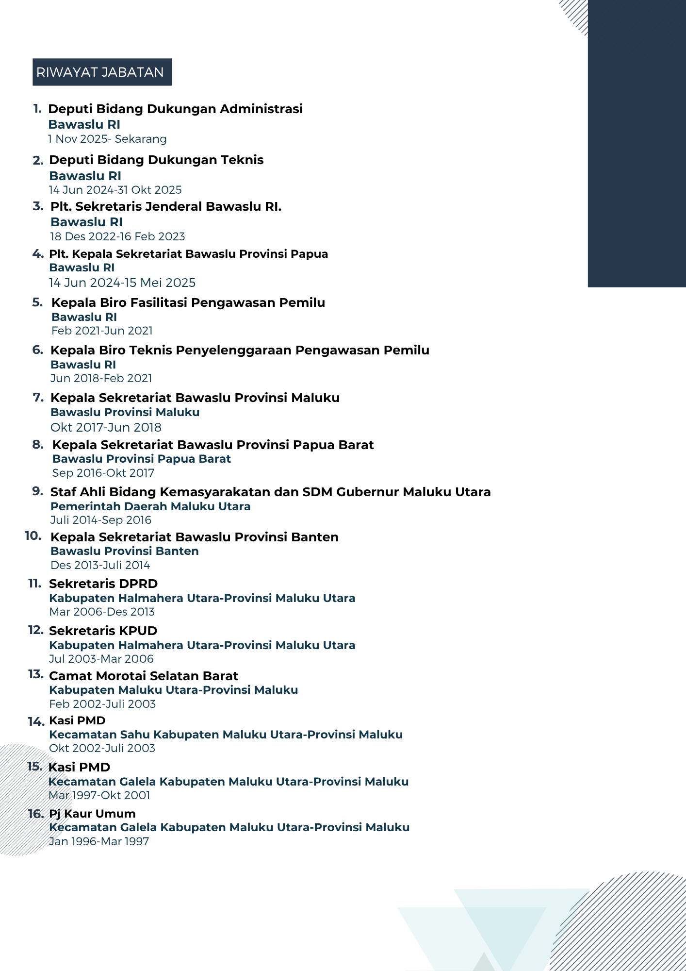 • Kepala Biro Fasilitasi Penanganan Pelanggaran Pemilu