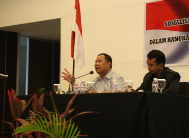 Makassar, Badan Pengawas Pemilu- Penutupan pembekalan persiapan persidangan Perselisihan Hasil Pemilihan Kepala Daerah bagi Bawaslu Provinsi dan Panwas Kabupaten/Kota kali ini terasa istimewa. Tiga ketua lembaga penyelengara Pemilu, Muhammad (ketua Bawaslu RI), Husni Kamil Manik (Ketua KPU RI) dan Jimly Asshiddiqie (ketua DKPP) dan Gunawan Suswantoro (Sekretaris Jenderal Bawaslu) turut hadir dalam kegiatan tersebut, Selasa malam, (10/11).
