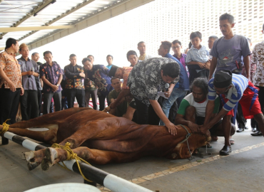Jakarta, Badan Pengawas Pemilu – Dalam rangka Hari Raya Idul Adha 1436 H, Bawaslu RI menggelar pemotongan hewan kurban sebagai bentuk kesyukuran dan manifestasi teladan Nabi Ibrahim a.s dan Nabi Ismail a.s. Sebanyak dua ekor sapi dan satu ekor kambing dipotong di halaman parkir Gedung Bawaslu, Jumat (25/9) siang.
