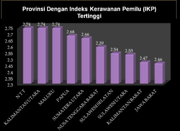 Jakarta, Badan Pengawas Pemilu – Badan Pengawas Pemilu (Bawaslu) merilis Indeks Kerawanan Pemilu (IKP) dalam Pilkada serentak 2015, di Jakarta, Selasa (1/9). Berdasarkan hasil indeks tersebut, lima provinsi menjadi provinsi paling rawan dalam pelaksanaan Pilkada 2015, yakni NTT, Kaltara, Maluku, Papua, dan Sumatera Utara.