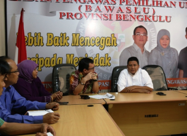 Bengkulu, Badan Pengawas Pemilu - Ketua Bawaslu RI, Muhammad melakukan supervisi rekapitulasi perhitungan surat suara pemilihan umum presiden dan wakil presiden tahun 2014 di Provinsi Bengkulu, Minggu (13/7) siang. Dalam kesempatan tersebut, Muhammad melakukan kunjungan ke kantor Bawaslu Provinsi Bengkulu Jl. Indragiri Padang Harapan dan menyambangi dua Kecamatan, Ratu Agung dan Teluk Segara di Kota Bengkulu untuk melihat langsung proses rekapitulasi perhitungan suara Pilpres di tingkat kecamatan.