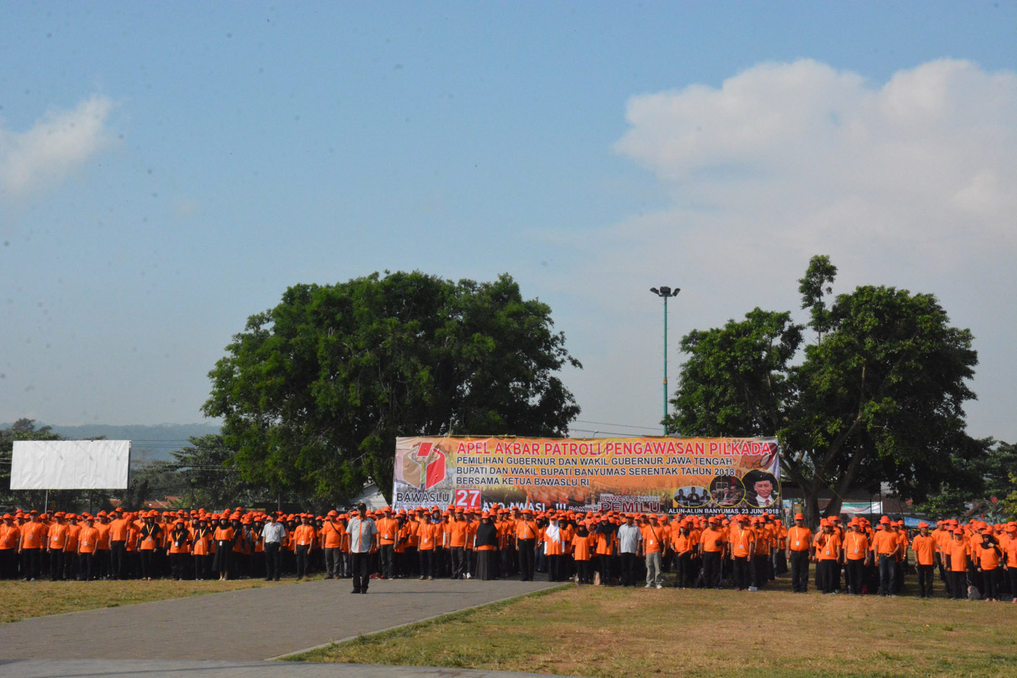 Banyumas, Badan Pengawas Pemilu – Sebanyak 3.646 personel yang terdiri dari pengawas TPS, pengawas pemilu lapangan (PPL), pengawas kelurahan/desa, Panwas Kecamatan dan Panwas Kabupaten menghadiri Apel Akbar  Patroli Pengawasan Pilkada Serentak Pemilihan Gubernur dan Wakil Gubernur Jawa Tengah,  serta Pemilihan Bupati dan Wakil Bupati Banyumas Tahun 2018 di Alun-Alun Banyumas, Sabtu, (23/6/2018).