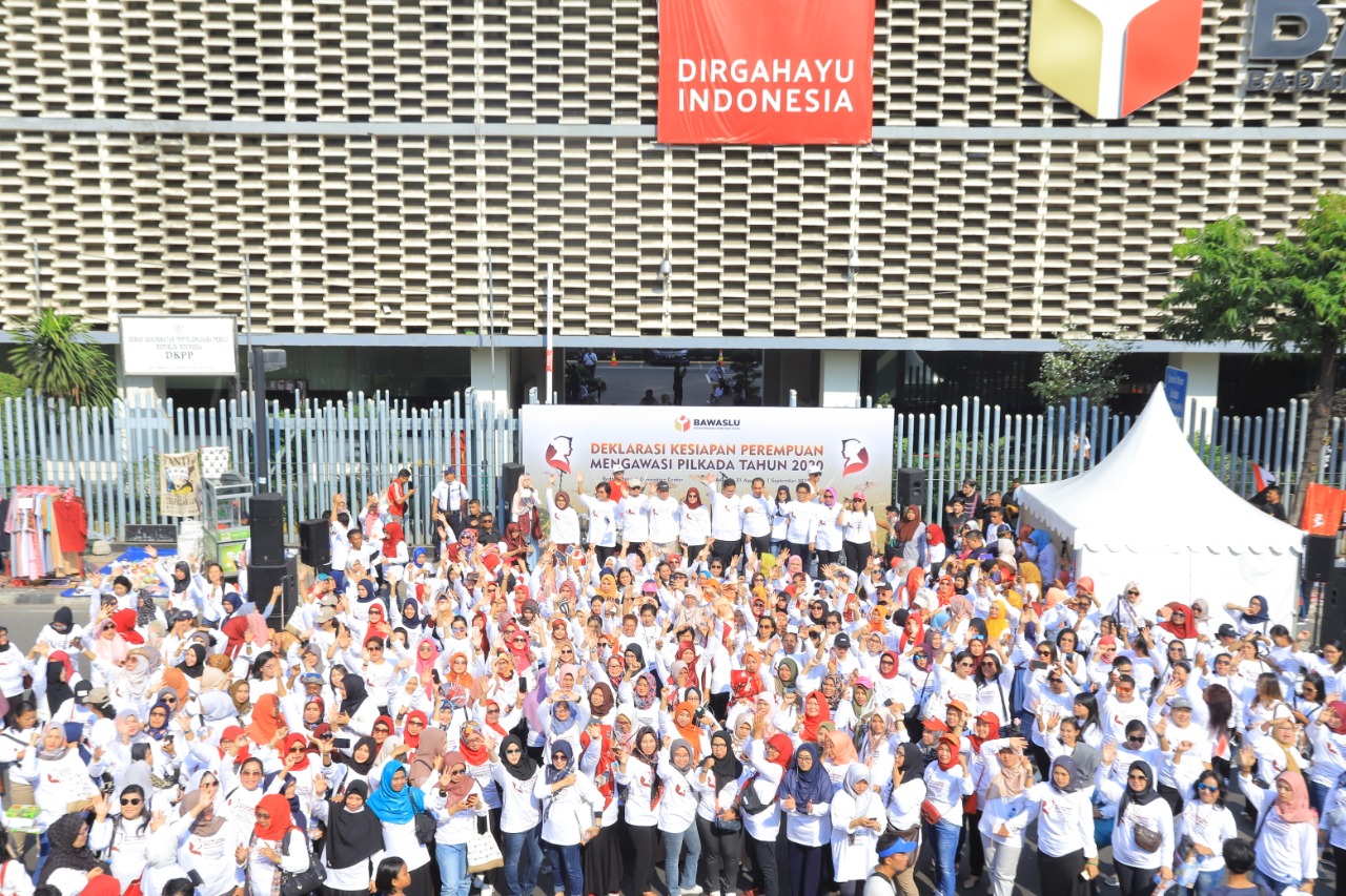 Jakarta, Badan Pengawas Pemilihan Umum - Sebanyak 452 perempuan pengawas pemilu seluruh Indonesia mendeklarasikan kesiapannya mengawasi Pemilihan Kepala Daerah (Pilkada) tahun 2020. Deklarasi dihelat di area Car Free Day (CFD) tepatnya di depan Kantor Bawaslu Jalan MH. Thamrin 14 Jakarta, Minggu (1/9/2019).