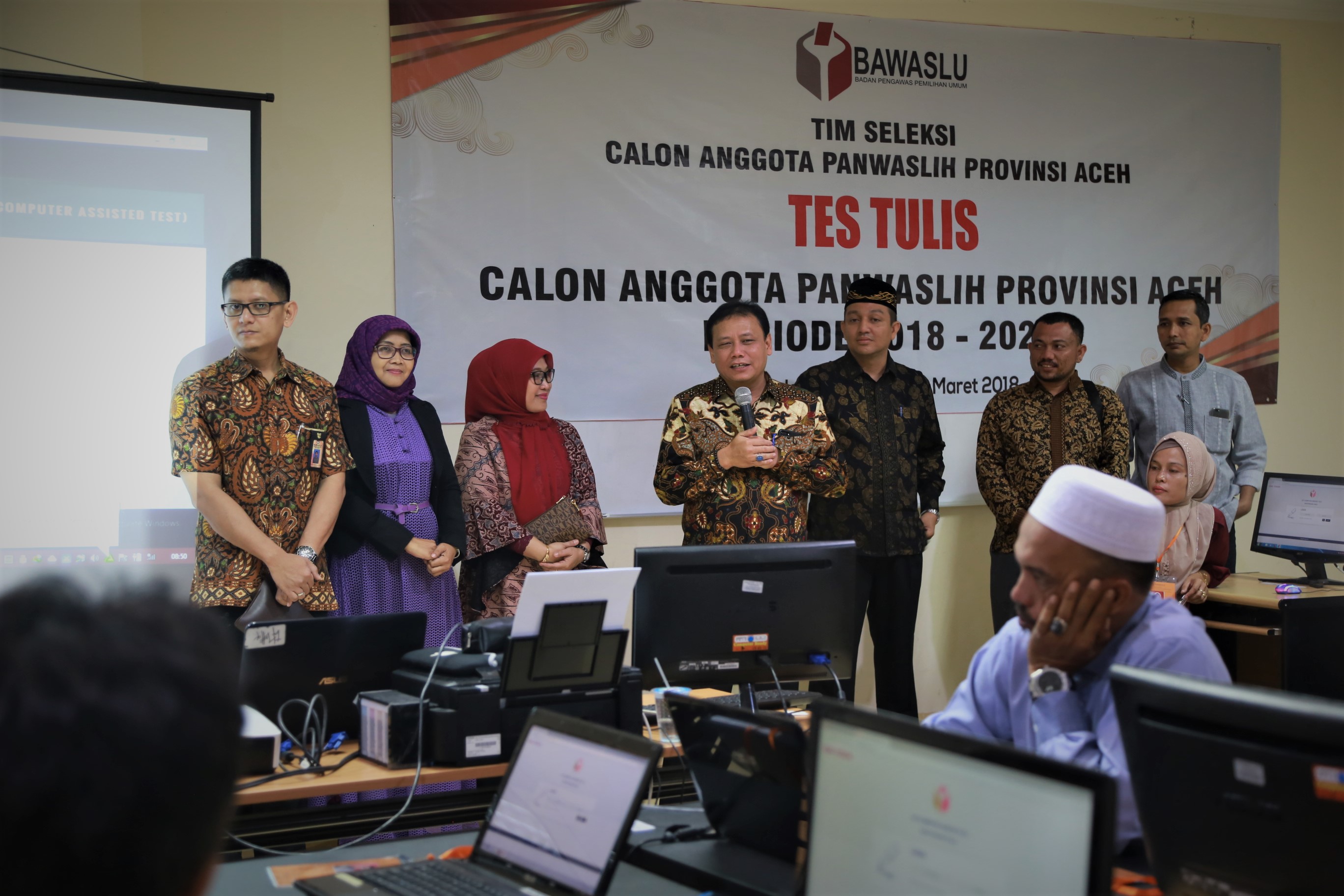 Banda Aceh, Badan Pengawas Pemilu – Sebanyak 46 peserta mengikuti Tes Tulis Seleksi Calon Anggota Panwaslih Provinsi Aceh Periode 2018–2023. Tes tahap kedua ini menggunakan sistem Computer Asissted Test (CAT). Ketua Bawaslu RI Abhan bersama Anggota Bawaslu RI Ratna Dewi Pettalolo meninjau langsung pelaksanaan Tes Tulis Seleksi Calon Anggota Panwaslih Provinsi Aceh Periode 2018-2023 di ICT Center Universitas Syiah Kuala (Unsyiah) Aceh, Jumat(16/3/2018).