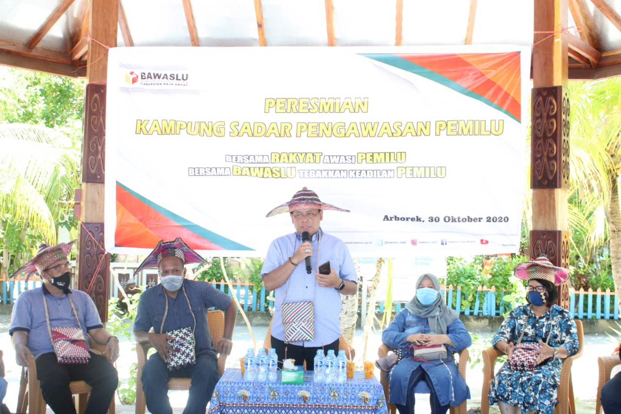 Raja Ampat, Badan Pengawas Pemilihan Umum - Ketua Bawaslu Abhan meresmikan Kampung Arborek sebagai kampung sadar pengawasan Pilkada di Kabupaten Raja Ampat. Peresmian tersebut dilakukan dalam upaya melibatkan partisipasi masyarakat dalam proses pengawasan Pilkada Tahun 2020 di Kabupaten Raja Ampat, Jumat (30/10/2020).