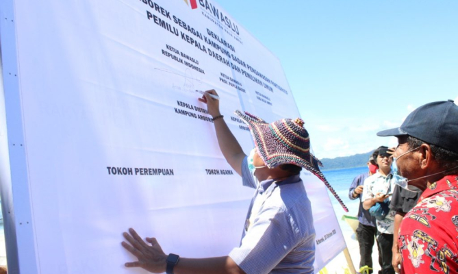 "Kesuksesan penyelenggaraan pilkada bukan semata tanggung jawab KPU dan Bawaslu tapi membutuhkan keterlibatan semua pihak. Tokoh masyarakat, tokoh agama khususnya di Kampung Arborek yang saat ini dideklarasikan sebagai Kampung Sadar Pengawasan Pemilihan Umum," papar Abhan.