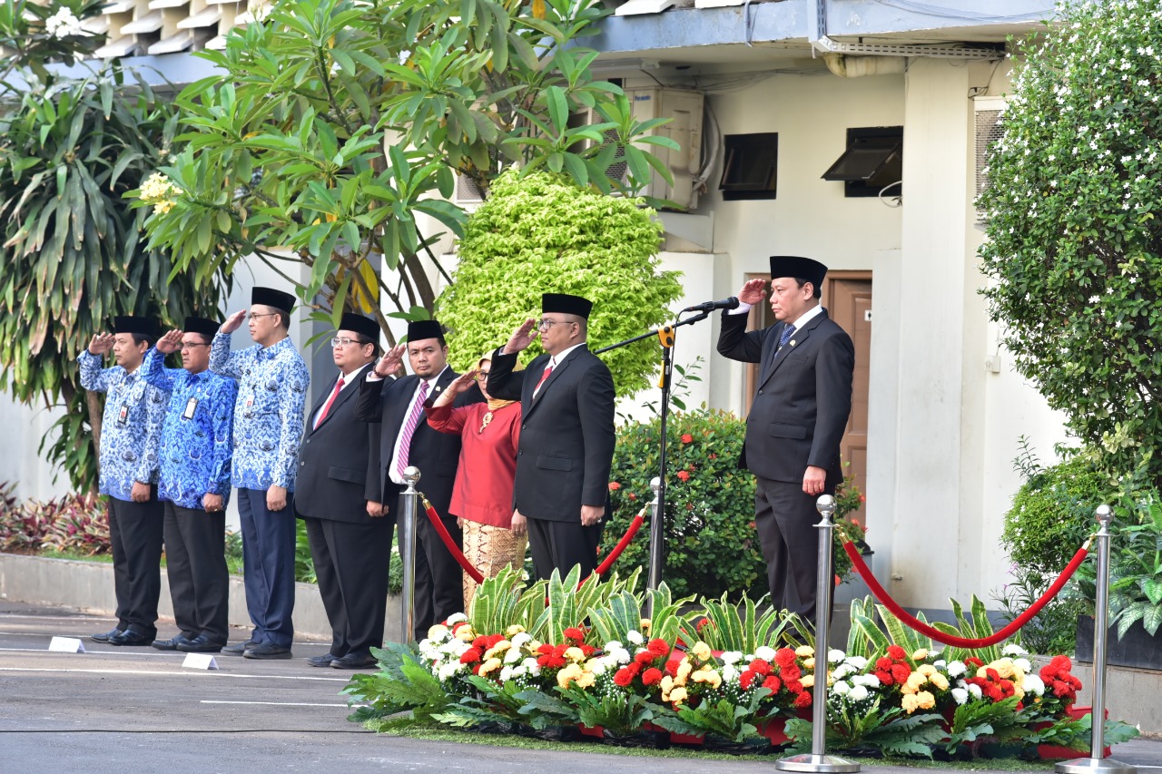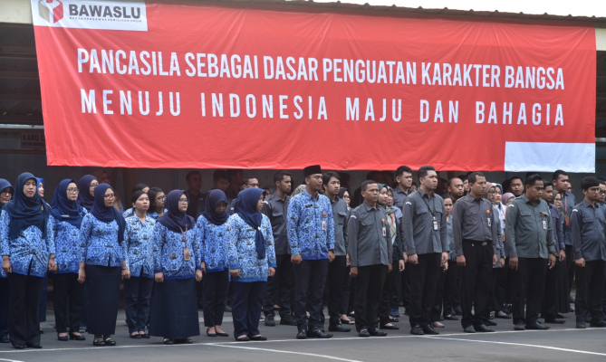 Jakarta, Badan Pengawas Pemilihan Umum - Selasa (1/10/2019) pagi, Bawaslu menggelar upacara Peringatan Hari Kesaktian Pancasila di Halaman Kantor Bawaslu. Upacara dihadiri lima pimpinan Bawaslu.