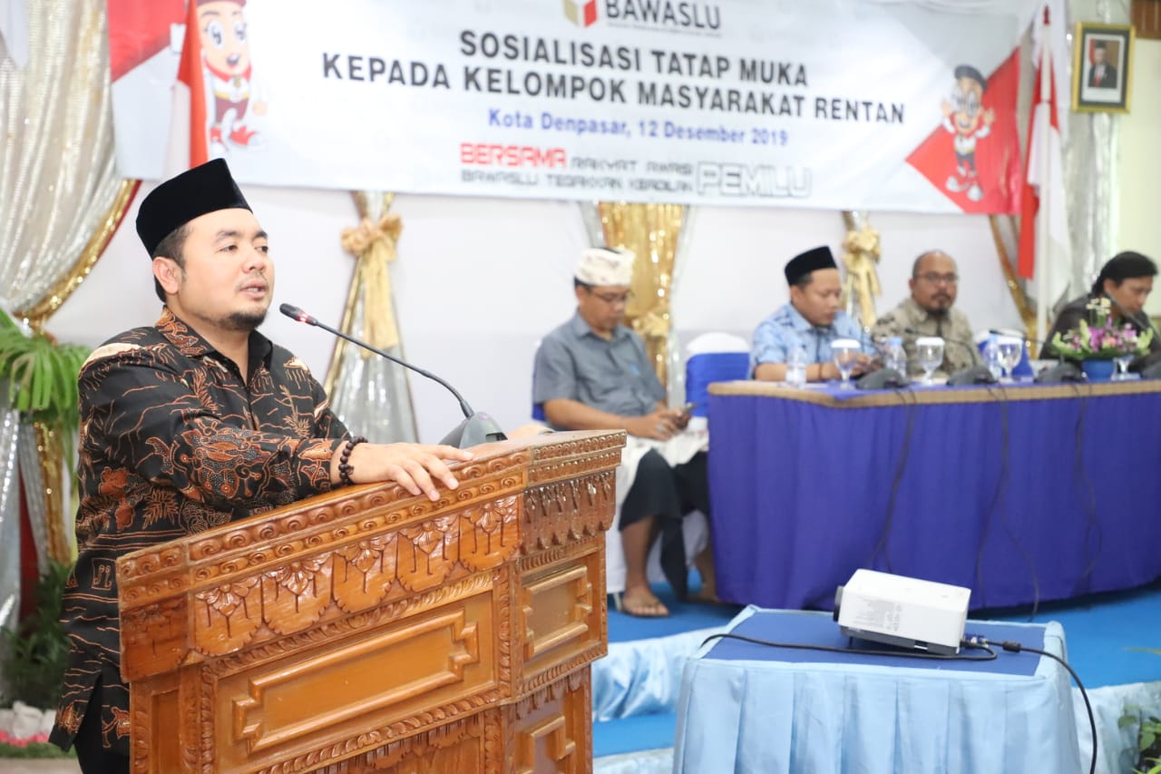 Koordinator Divisi Pengawasan dan Sosialisasi Bawaslu Mochamad Afifudin memberikan pengarahan dalam acara Sosialisasi Tatap Muka Kepada Kelompok Masyarakat Rentan di Denpasar, Bali, Kamis 12 Desember 2019/Foto: Hendi Purnawan