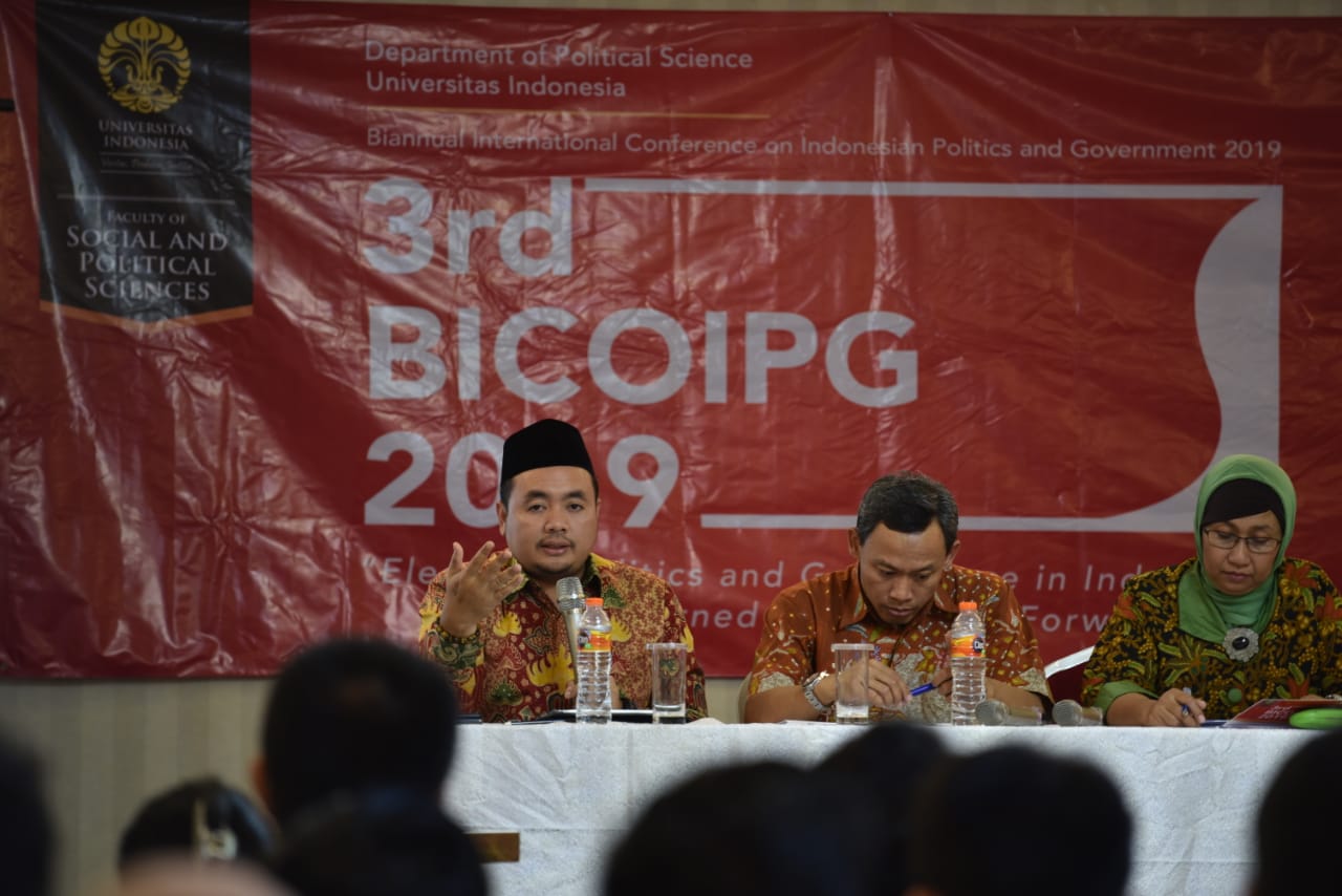 Depok, Badan Pengawas Pemilihan Umum - Anggota Bawaslu Mochammad Afifuddin memaparkan catatan-catatan Bawaslu mengenai evaluasi permasalahan selama Pemilu 2019. Hal ini disampaikannya saat menjadi pembicara dalam acara Biannual International Conferences on Indonesian Politics and Governments yang diadakan Fakultas Ilmu Sosial dan Ilmu Politik Universitas Indonesia (UI) di Depok Jawa Barat, Rabu (10/7/2019).