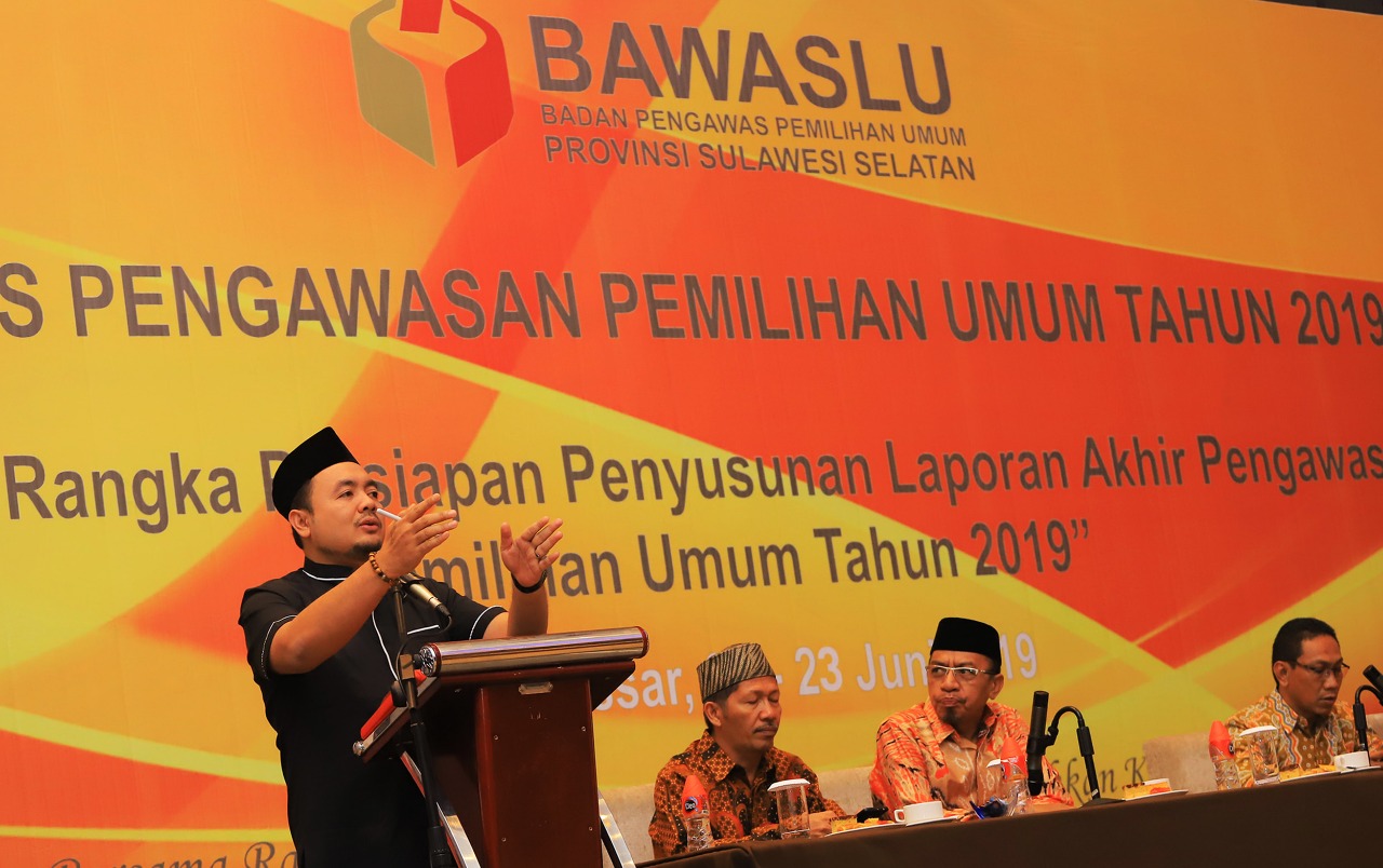 Anggota Mochammad Afifuddin menghadiri Rapat Teknis Pengawasan Pemilu 2019 bertajuk Persiapan Penyusunan Laporan Akhir Pengawasan Pemilu 2019 Bawaslu di Makassar, Sulawesi Selatan, Jumat 21 Juni 2019/Foto: Nurisman