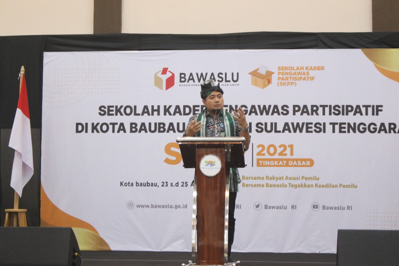 Bau-Bau, Badan Pengawas Pemilihan Umum- Anggota Bawaslu Mochammad Afifuddin menjelaskan Sekolah Kader Pengawas Partisipatif (SKPP) adalah program Bawaslu yang kemudian masuk sebagai program unggulan dan program prioritas Presiden Jokowi yang digelar 100 (seratus) titik serta melibatkan 10.000 (sepuluh ribu) peserta.