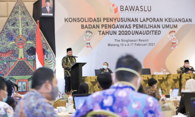 “Kita harus medapatkan WTP tahun ini,” katanya saat membuka kegiatan Konsolidasi Penyusunan Laporan Keuangan Bawaslu Tahun 2020 di Kota Batu, Provinsi Jawa Timur, Senin (15/2/2021).