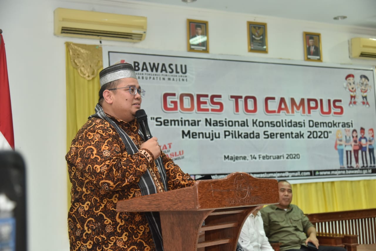 Majene, Badan Pengawas Pemilihan Umum - Anggota Bawaslu Rahmat Bagja mengajak mahasiswa dapat memilih kepala daerah dengan benar dan menginformasikan kepada masyarakat. Dirinya berharap mahasiswa ikut terlibat mendidik masyarakat menjadi pemilih berkualitas dengan melawan politik uang.