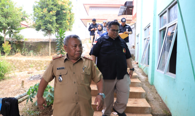 Parung, Badan Pengawas Pemilihan Umum - Anggota Bawaslu RI Rahmat Bagja dalam kunjungan pengawasan hari ini menyempatkan diri melakukan pengecekan lokasi gudang penyimpanan di Kecamatan Ciseeng, Kabupaten Bogor yang sempat jebol akibat terendam banjir.