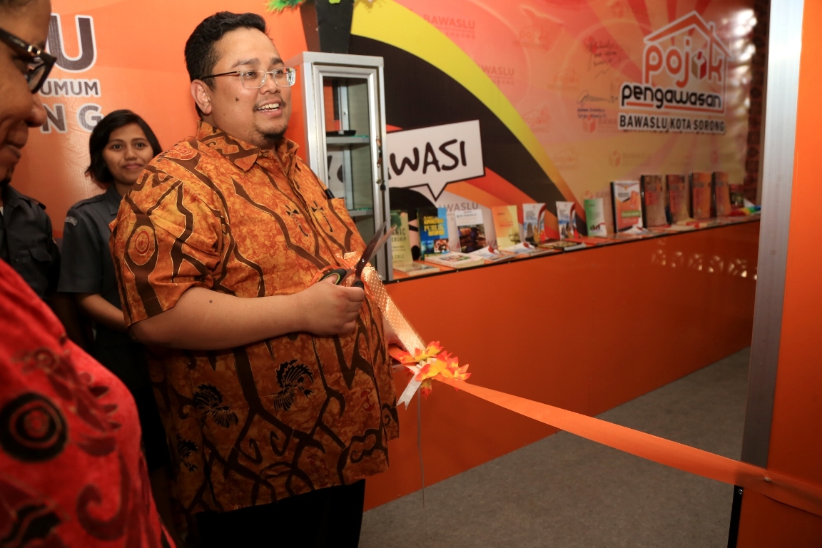Papua Barat, Badan Pengawas Pemilihan Umum - Anggota Bawaslu RI Rahmat Bagja meresmikan Pojok Pengawasan di Kantor Bawaslu Kota Sorong, Papua Barat, Senin (29/10/2018). Peresmian ini ditandai dengan pemotongan pita dan disaksikan seluruh Ketua dan Anggota Bawaslu Provinsi se-Indonesia.