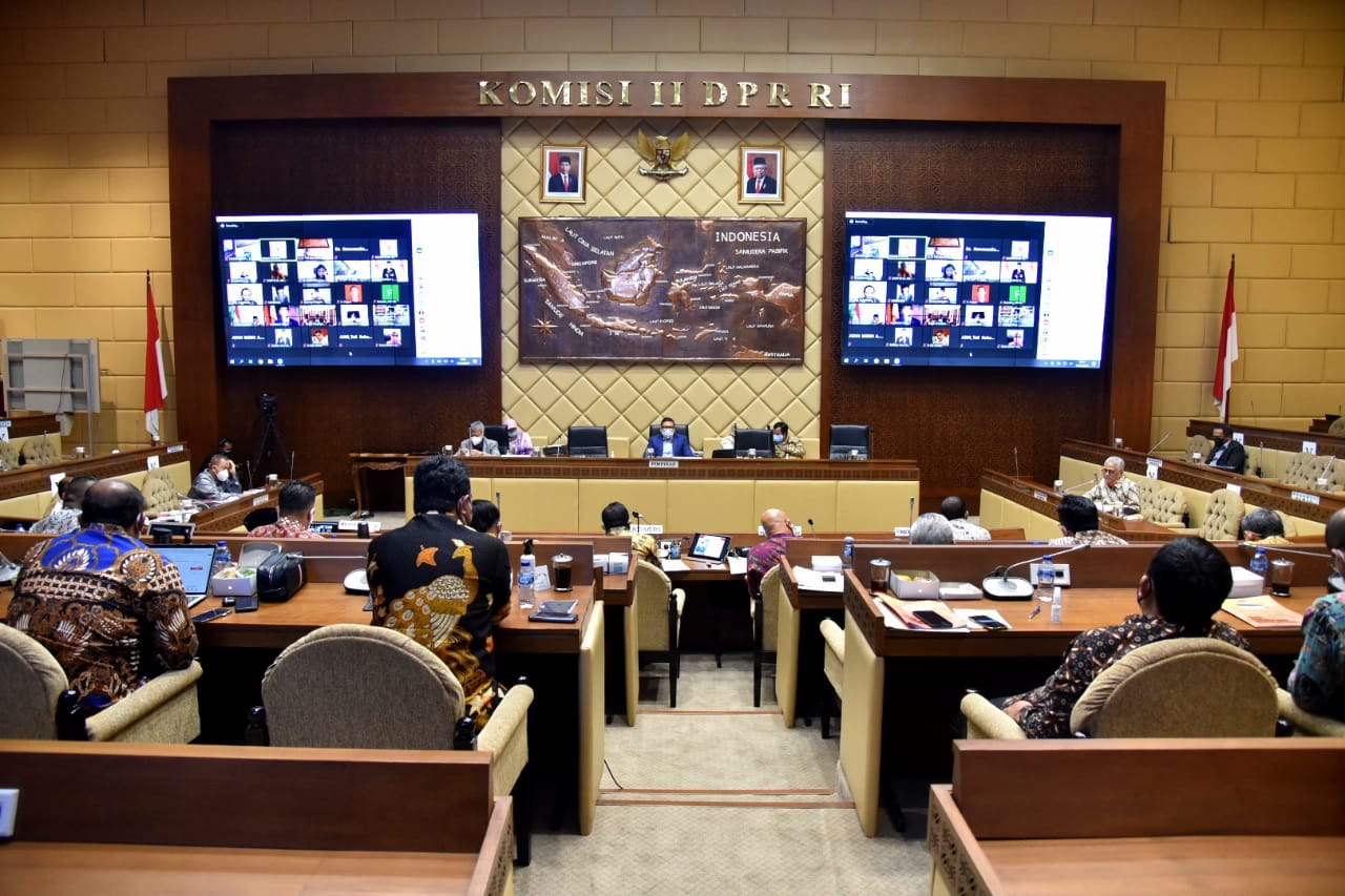 Situasi Rapat Dengar Pendapat (RDP) Komisi II DPR RI bersama Kemendagri, Bawaslu, KPU, dan DKPP di Jakarta, Selasa 19 Januari 2021/Foto: Hendru (Humas Bawaslu RI)