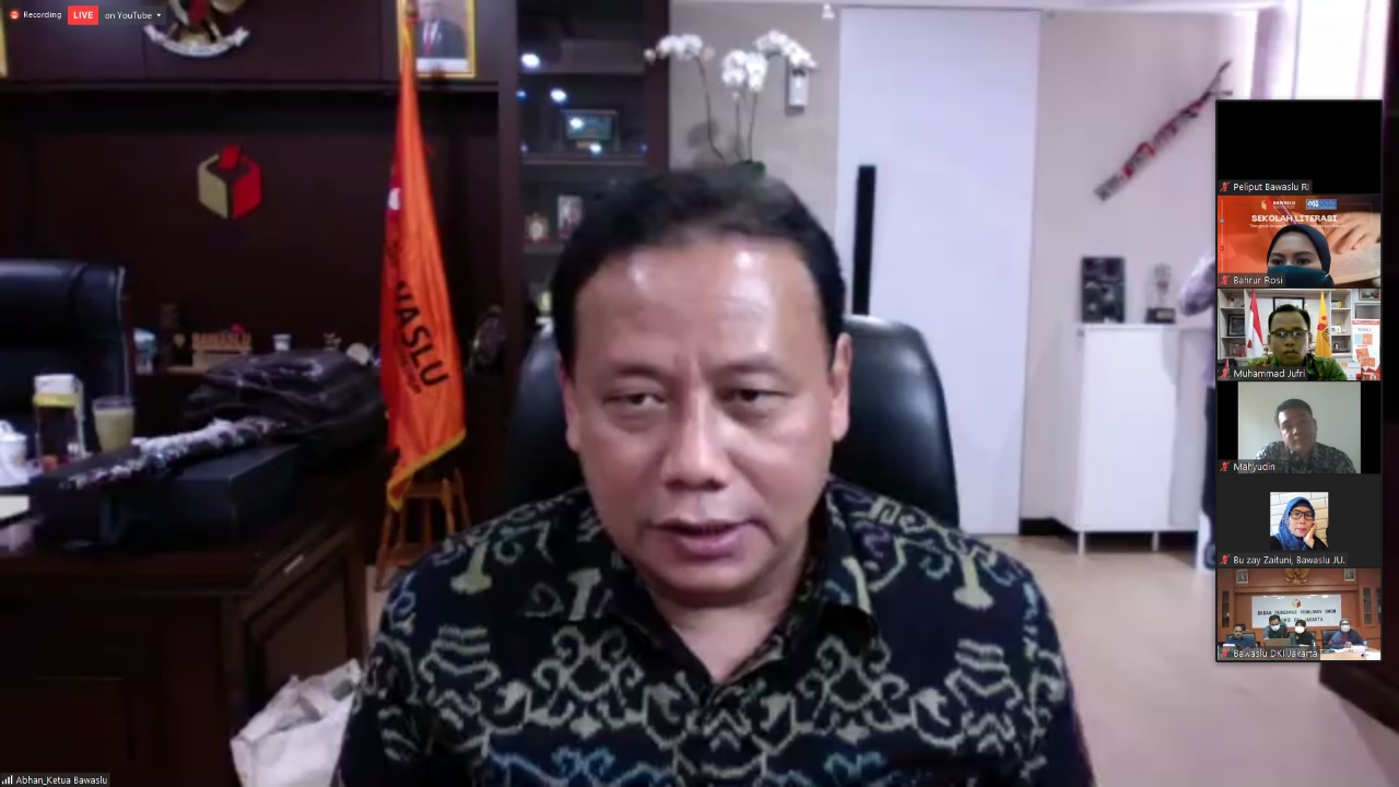 Ketua Bawaslu Abhan saat menjadi 'keynote speaker' dalam pembukaan Sekolah Literasi Digital, Senin (4/10/2021).