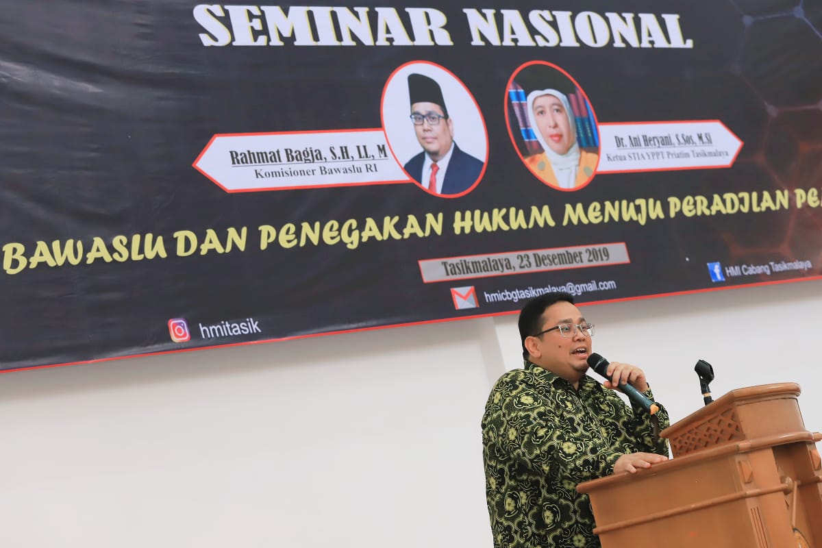 Bagja yang menjadi pembicara seminar nasional bertema: Bawaslu dan Penegakan Hukum Menuju Peradilan Pemilu di kampus STAI YPPT Tasikmalaya, Selasa (24/12/2019) berharap, dengan mengetahui peran dan posisi lembaga penyelenggara pemilu khususnya Bawaslu, maka mahasiswa diharapkan tidak apatis terhadap pelaksanaan pilkada maupun pemilu.