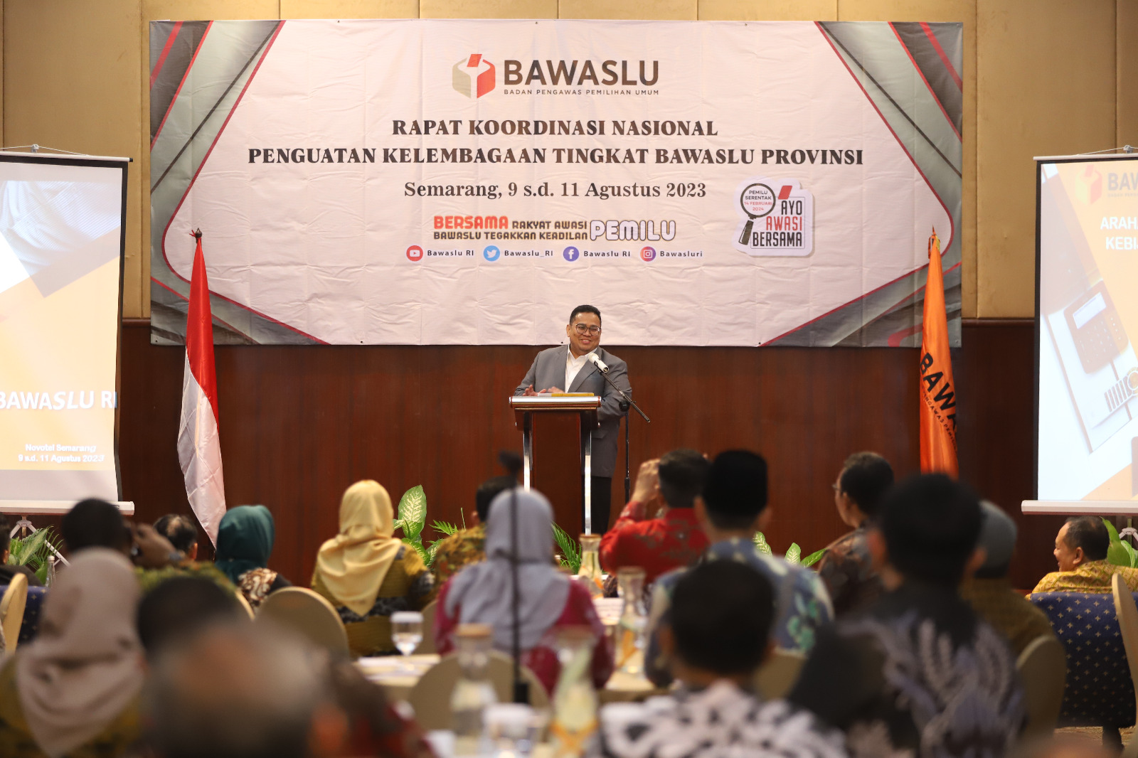 Ketua Bawaslu Rahmat Bagja saat memberikan sambutan dalam membuka Rakornas Penguatan Kelembagaan Tingkat Bawaslu Provinsi pada, Rabu (9/8/2023) di Semarang, Jawa Tengah/Foto: Pemberitaan dan Publikasi Bawaslu RI