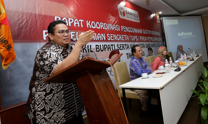 Bandar Lampung, Badan Pengawas Pemilihan Umum - Anggota Bawaslu Rahmat Bagja meminta Bawaslu Kabupaten/Kota memahami pola dan prosedur penyelesaian sengketa untuk Pilkada 2020. Dia pun meminta jajaran Bawaslu daerah memahami penerimaan sengketa secara tepat dan efisien melalui Sistem Informasi Penyelesaian Sengketa (SIPS).