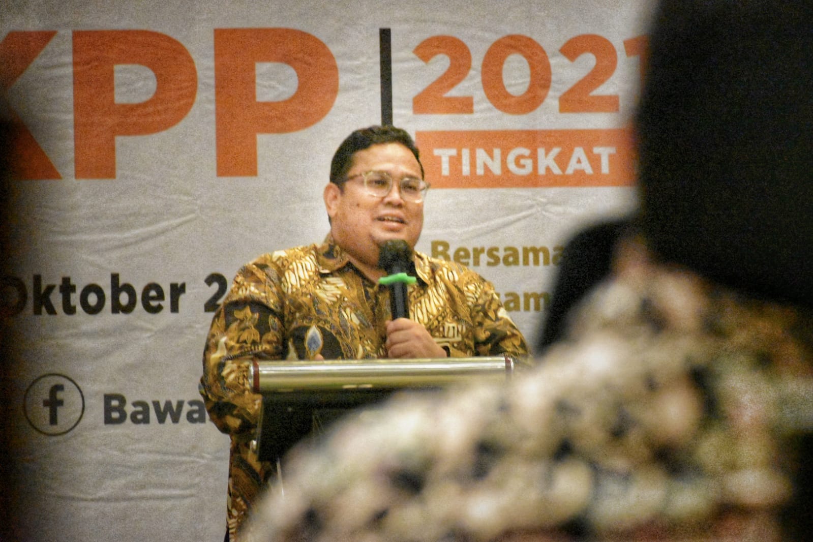 Anggota Bawaslu Rahmat Bagja saat membuka Sekolah Kader Pengawasan Partisipatif (SKPP) Tangerang Raya di Jatiuwung, Kota Tangerang, Senin, (4/10/2021).