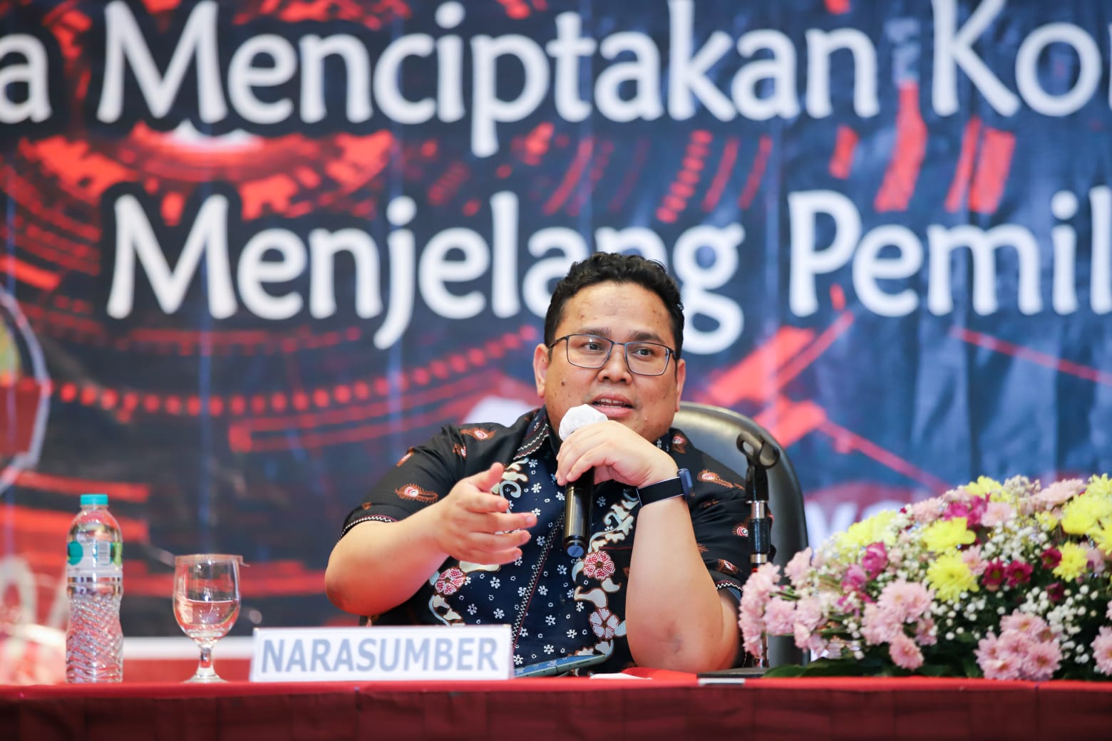 Jakarta, Badan Pengawas Pemilihan Umum- Ketua Bawaslu Rahmat Bagja menyampaikan potensi terganggunya keamanan dan ketertiban masyarakat (kantibmas) dalam tahapan Pemilu 2024. Hal ini disampaikannya dalam forum keamanan dan ketertiban masyarakat menjelang Pemilu 2024 yang digelar Badan Intelijen Keamanan Polri di Jakarta, Rabu (27/7/2024).
