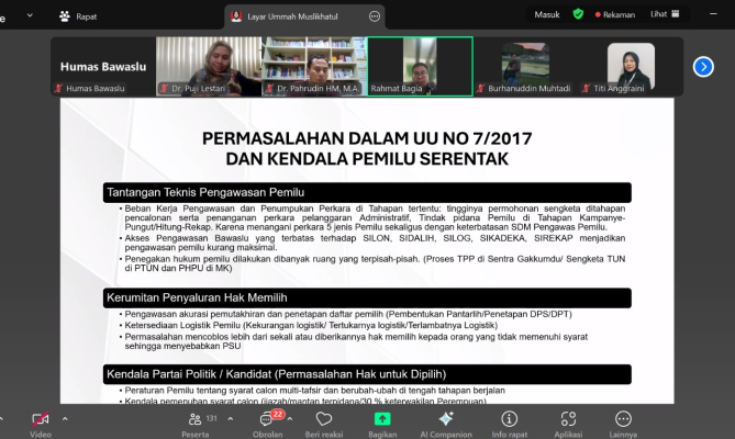 Tangkapan layar Ketua Bawaslu Rahmat Bagja dalam webinar yang diselenggarakan Asosiasi Program Studi Ilmu Politik Indonesia (Apsipol), Senin (11/8/2025).