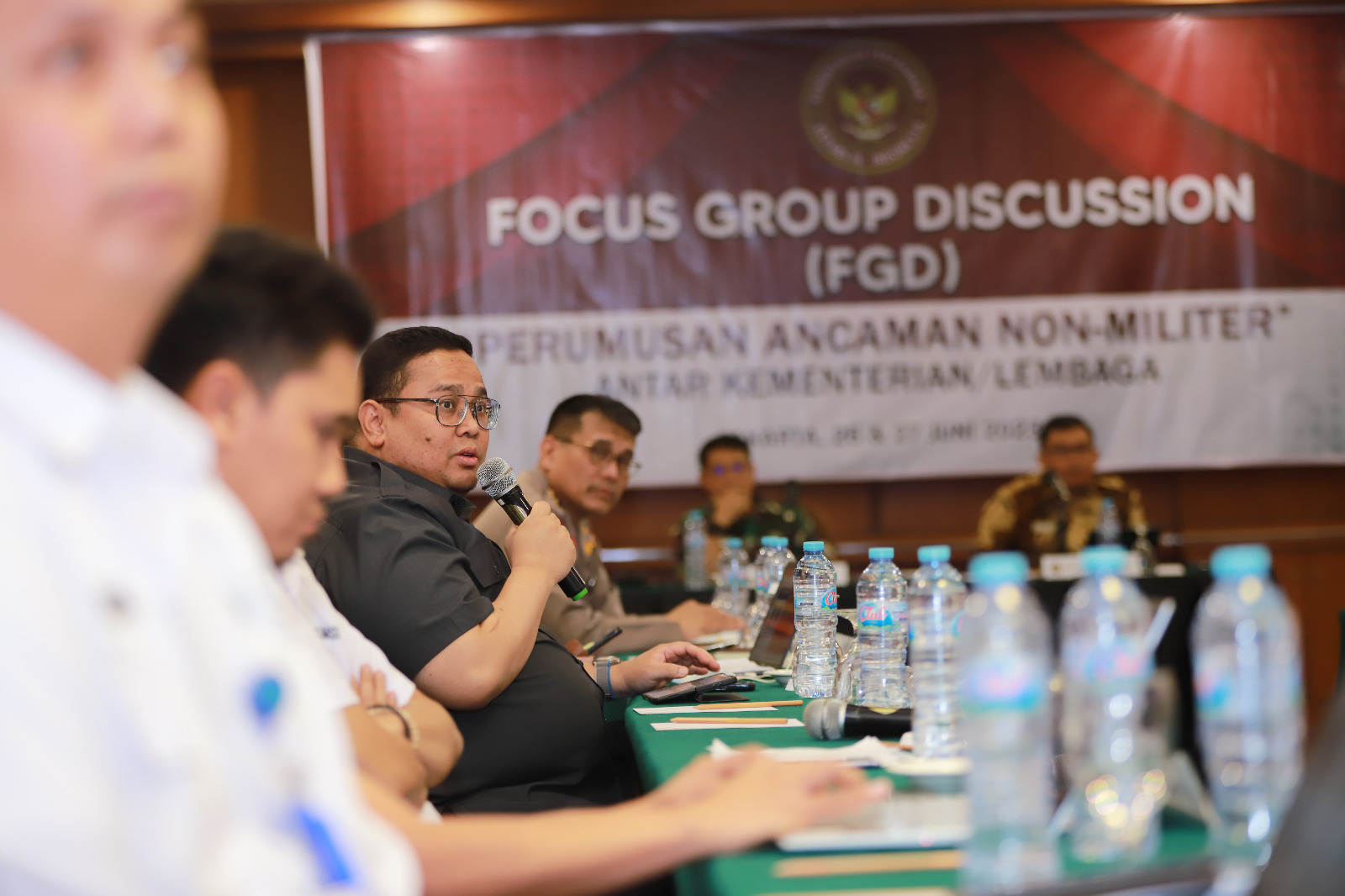 Ketua Bawaslu Rahmat Bagja (ketiga dari kiri) menjadi narasumber pada kegiatan Diskusi Kelompok Terpumpun Perumusan Ancaman Non-Militer Antar-Kementerian/Lembaga di Jakarta, Senin (26/6/2023)/foto: Publikasi dan Pemberitaan Bawaslu.