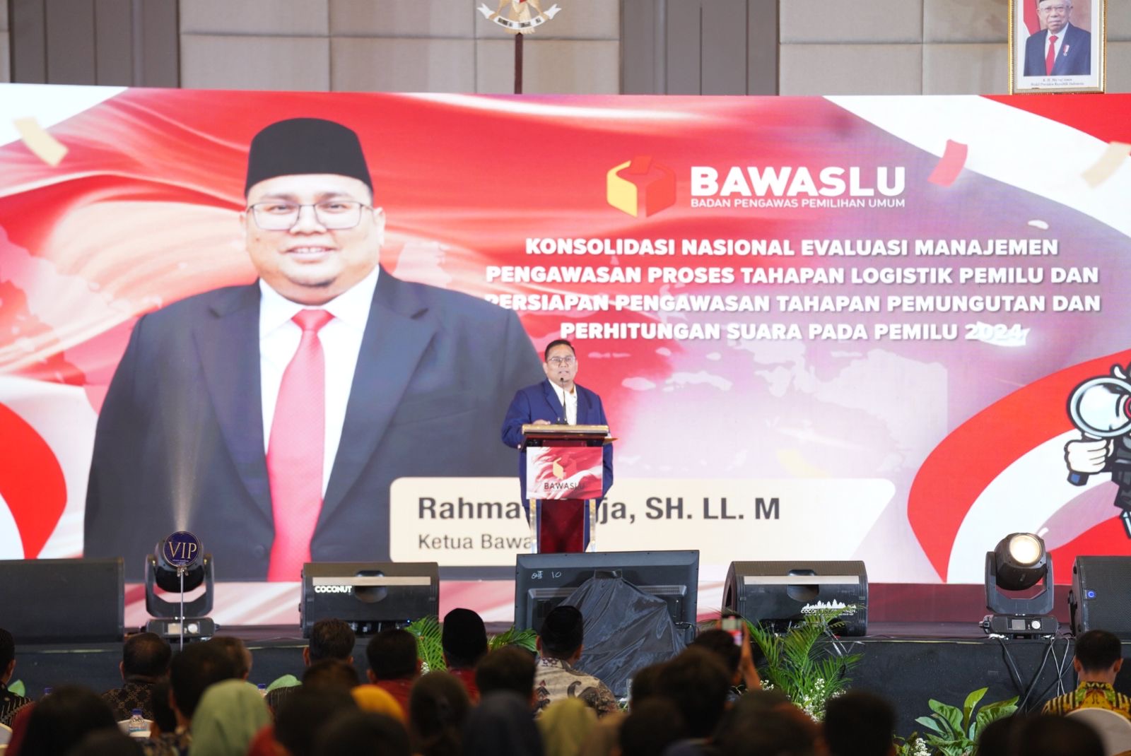 Solo, Badan Pengawas Pemilihan Umum - Ketua Bawaslu Rahmat Bagja menegaskan kerja pengawasan yang dilakukan pengawas pemilu dapat membuktikan kebenaran penghitungan suara. Hal ini dia sampaikan dalam Konsolidasi Nasional Evaluasi Manajemen Pengawasan Proses Tahapan Logistik Pemilu dan Persiapan Pengawasan Tahapan Pemungutan dan Perhitungan Suara pada Pemilu 2024 di Solo, Kamis (25/1/2024).