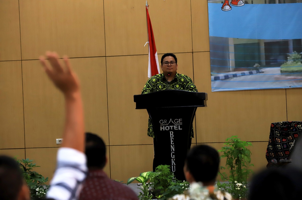Anggota Bawaslu Rahmat Bagja saat menjadi narasumber dalam Kegiatan Pembukaan Rapat Kerja Teknis Evaluasi Penyelesaian Sengketa Proses Pemilu Tahun 2019 dan Persiapan Sengketa Pilkada Tahun 2020 Gelombang Ke III di Bengal, Bengkulu Selasa, 2 Desember 2019/Foto: Nurisman