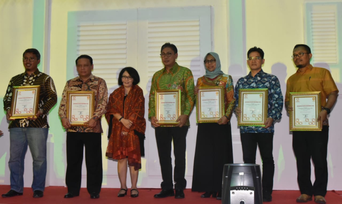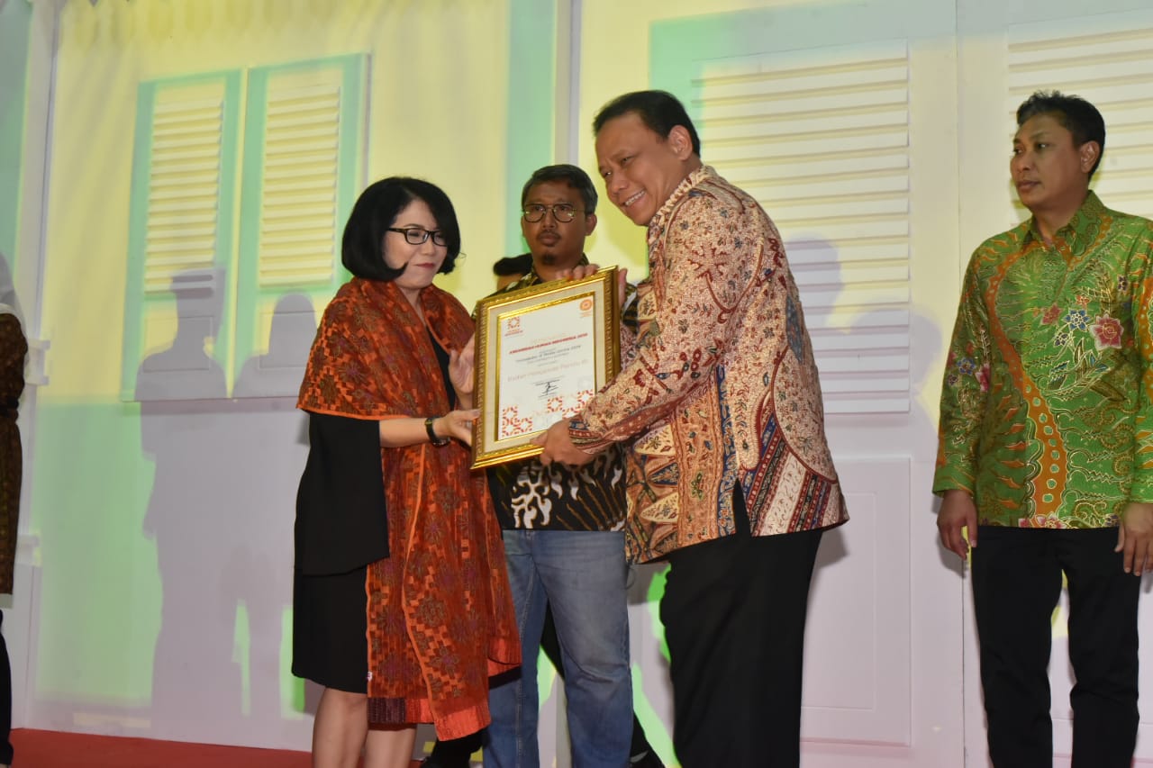 Ketua Bawaslu Abhan saat menerima penghargaan dari Humas Indonesia di Balaikota Tangerang, Jumat 30 Agustus 2019/Foto: Ranap Simanjuntak
