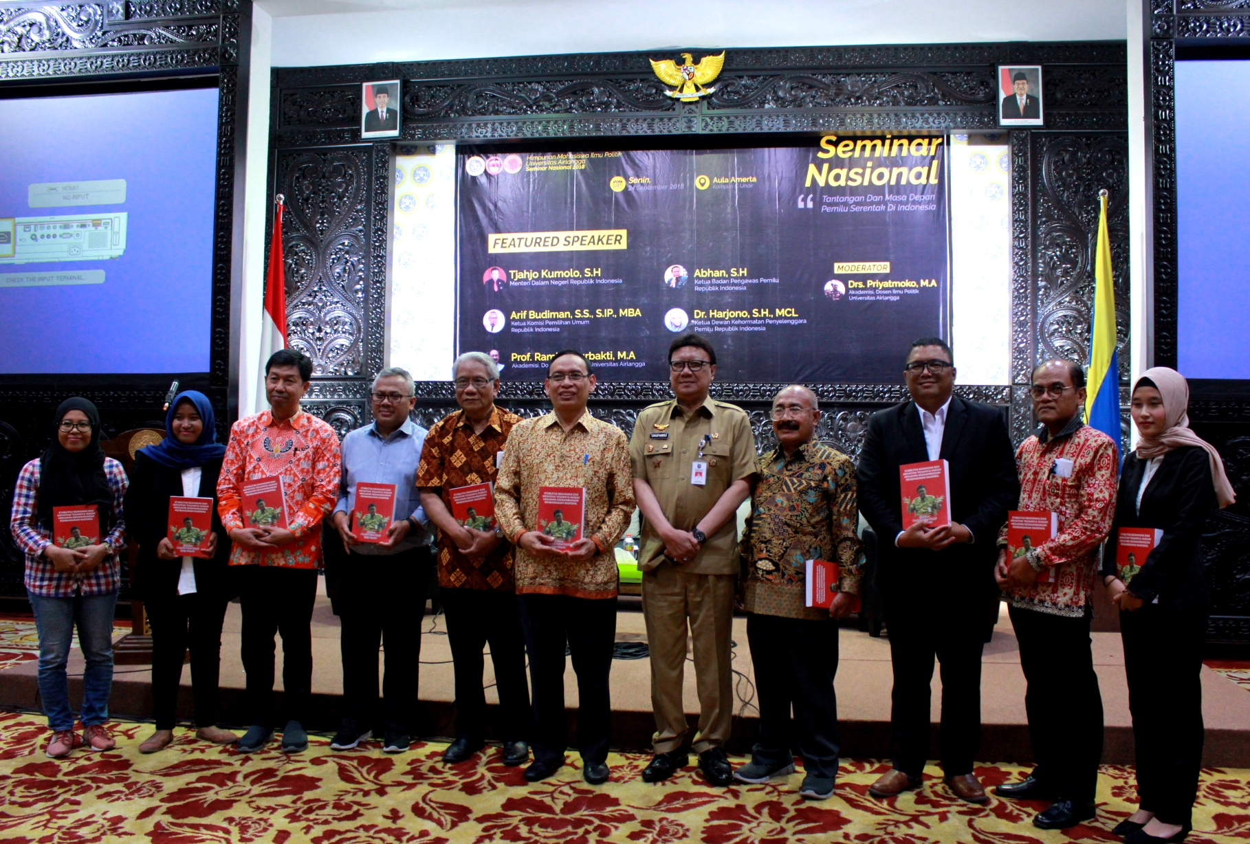 Seminar Nasional ini turut juga dihadiri Menteri Dalam Negeri Tjahjo Kumolo, Ketua DKPP Harjono, Ketua KPU RI Arief Budiman, Anggota KPU RI Viryan Aziz, Guru Besar Unair Ramlan Surbakti, dan dimoderatori oleh Dosen Unair, Priyatmoko.