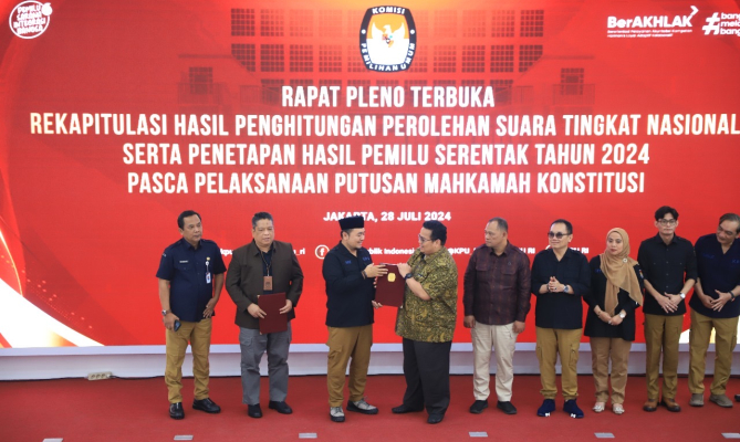 Untuk diketahui, hasil dari rapat pleno hari ini akan mengubah sebagian Keputusan KPU Nomor 360 Tahun 2024 tentang Hasil Pemilu 2024 yang sebelumnya sudah disahkan pada 20 Maret 2024. Penetapan Hasil Pemilu Serentak 2024 pun diperbaharui menjadi Keputusan KPU Nomor 1050 Tahun 2024 yang ditetapkan hari ini.