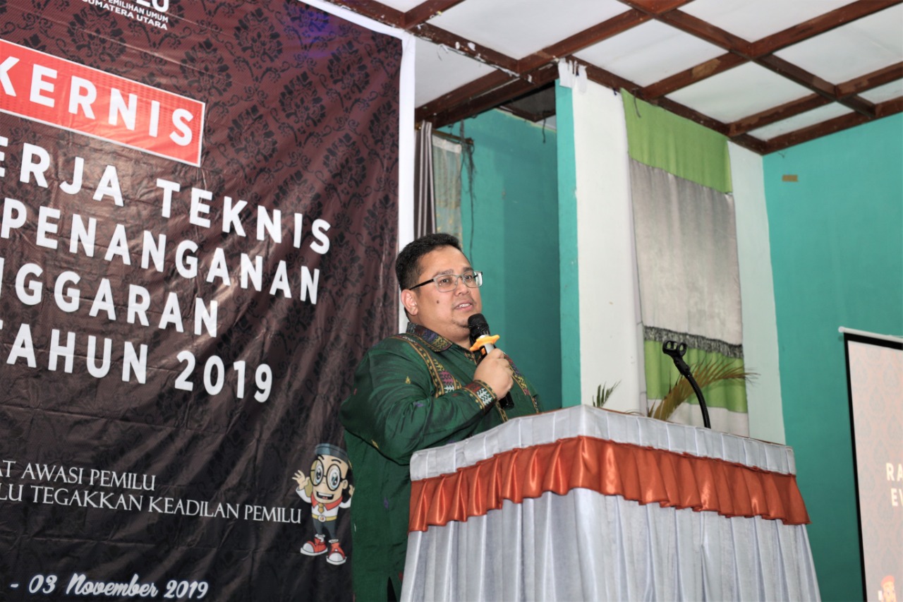 Anggota Bawaslu Rahmat Bagja saat memberi arahan dalam Rapat Kerja Teknis Evaluasi Penanganan Pelanggaran Pemilu 2019 di Padang Sidempuan, Sumatra Utara, Jumat (1/11/2019) malam/Foto: Irwan