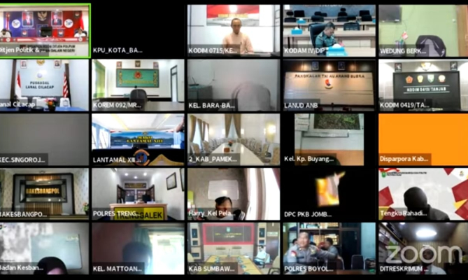 Anggota Bawaslu Lolly Suhenty (kiri) dalam tangkapan layar diskusi daring yang digelar Kemendagri, Rabu (31/5/2023)/foto: Publikasi dan Pemberitaan Bawaslu.