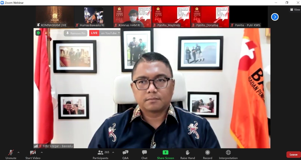 Jakarta, Badan Pengawas Pemilihan Umum - Komisi Nasional Hak Asasi Manusia (Komnas HAM) meluncurkan hasil laporan tahunannya. Dalam acara tersebut, Anggota Bawaslu Fritz Edward Siregar pun ikut menyimak tentang isi dari laporan tersebut yang menyatakan jelas perbedaan hasil kerja tahun 2019 dan 2020.