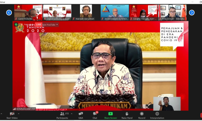 Dia berharap kiranya pencapaian yang sudah baik dapat dipertahankan bahkan ditingkatkan agar indeks birokrasi Komnas HAM terus lebih baik. Menteri Koordinator Bidang Politik, Hukum dan Keamanan (Menkopolhukam) Mahfud MD pun menambahkan Komnas HAM harus bekerja secara objektif karena lembaga yang independen.