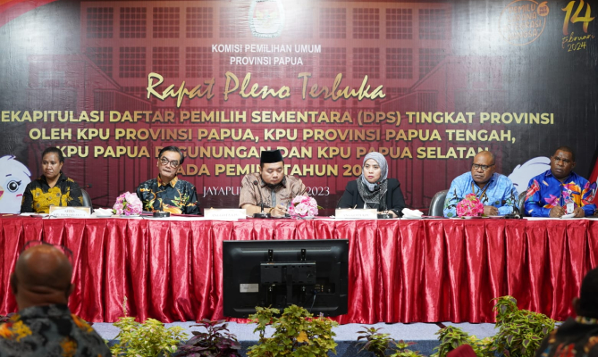 Kotapura, Badan Pengawas Pemilihan Umum- Anggota Bawaslu Totok Hariyono menghadiri rapat pleno terbuka rekapitulasi daftar pemilih sementara (DPS) tingkat provinsi empat daerah otonomi Baru (DOB). Keempat DOB itu yakni Papua Barat Daya, Provinsi Papua Tengah, Papua Pegunungan, dan Papua Selatan, juga provinsi Papua dan Papua Barat.