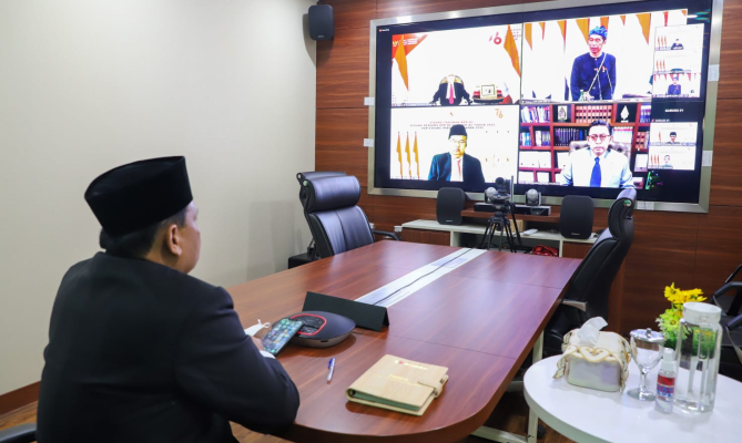 Ketua Bawaslu Abhan saat menghadiri Sidang Tahunan MPR dan Sidang bersama DPR dan DPD juga pidato kenegaraan Presiden, Senin (16/8/2021) dari Kantor Bawaslu/Foto: Pemberitaan dan Publikasi Bawaslu RI