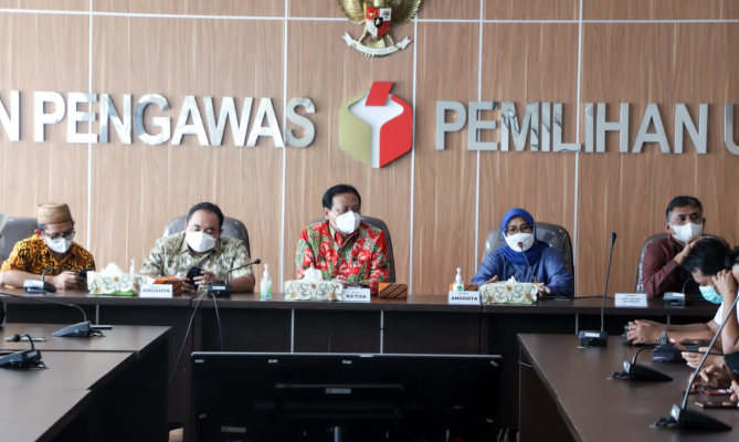 Ketua Bawaslu Abhan (kiri) dan Anggota Bawaslu Ratna Dewi Pettalolo saat memberikan arahan dalam Rapat Evaluasi Program Kerja Divisi Pengawasan Tahun 202 di ruang rapat lantai 5 Gedung, Jakarta, Rabu 17 November 2021/Foto: Pemberitaan dan Publikasi Bawaslu RI