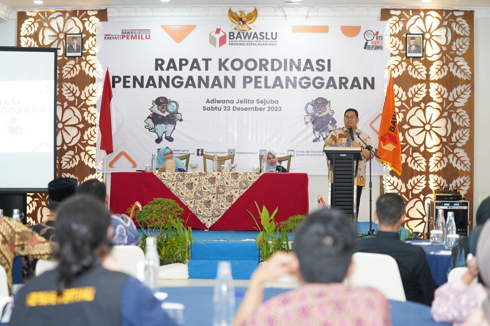 Ketua Bawaslu Rahmat Bagja saat memberikan sambutan dalam Rapat Koordinasi Penanganan Pelanggaran Bawaslu Kepulauan Riau, Sabtu (13/12/2023).
