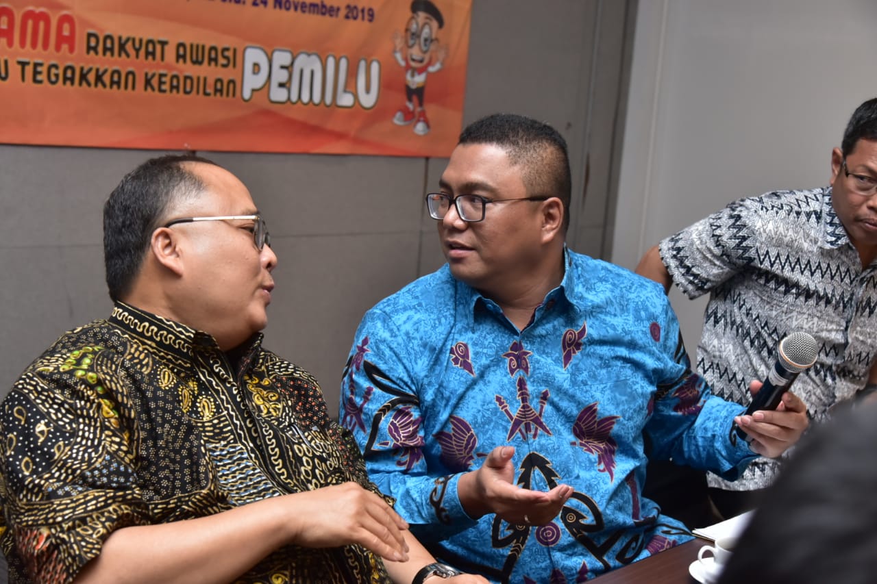 Anggota Bawaslu Fritz Edward Siregar (kanan) saat berbincang dengan peserta FGD Analisis Kedudukan Hukum Bawaslu Kabupaten Kota dalam Pilkada 2020 di Jakarta, Jumat (22/11/2019) malam/Foto: Jaa Rizka Pradana