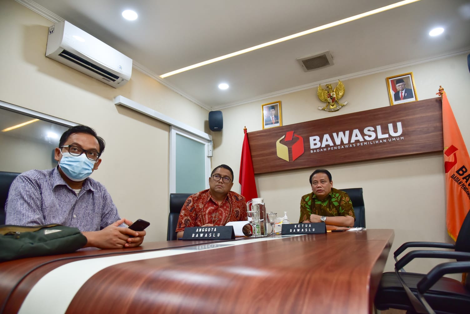 Ketua Bawaslu Abhan (kanan) dan Anggota Bawaslu Fritz Edward Siregar (tengah) saat melakukan rapat koordinasi secara daring dengan Bawaslu Papua dalam persiapan pengawasan PSU Yalimo, Rabu 29 Desember 2021/Foto: Pemberitaan dan Publikasi Bawaslu RI