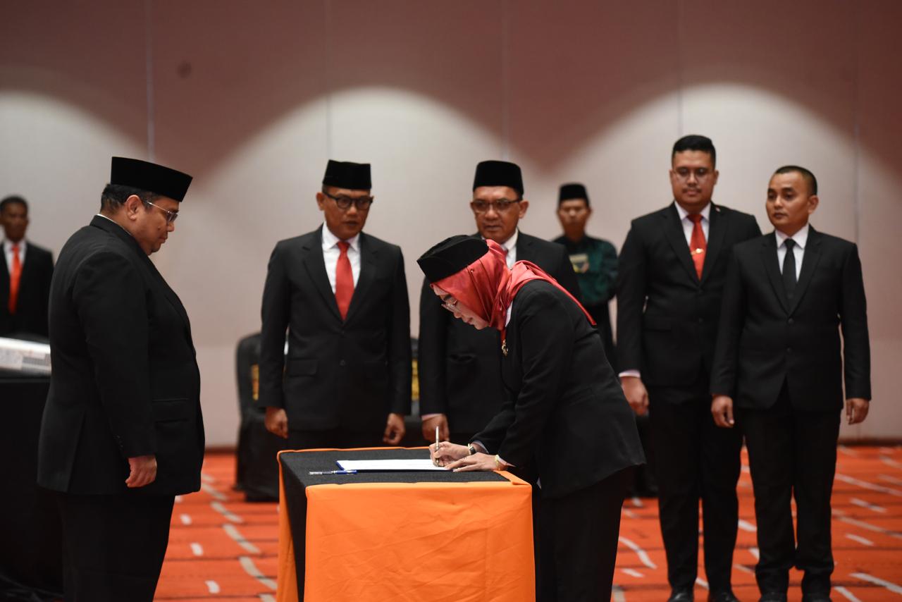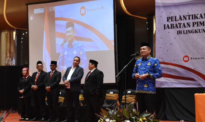 Jakarta, Badan Pengawas Pemilihan Umum- Ketua dan Sekretaris Jenderal Bawaslu melantik sekaligus mengambil sumpah/janji pimpinan tinggi madya dan pratama di lingkungan Bawaslu. Para terlantik diminta untuk bekerja dengan baik sesuai tugas dan fungsinya masing-masing.