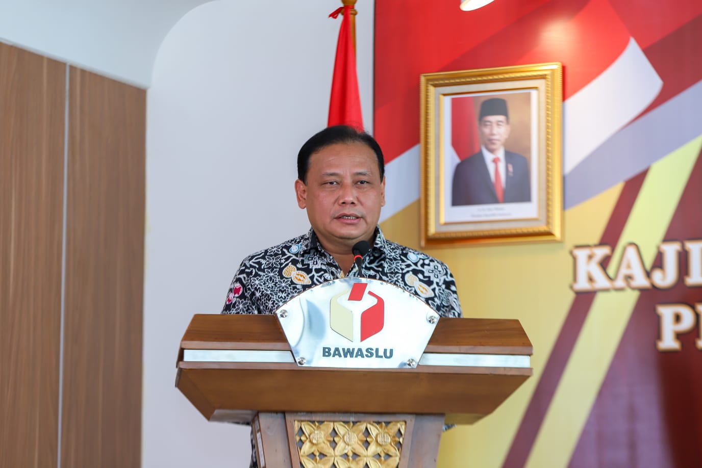 Ketua Bawaslu Abhan membuka acara Peluncuran Buku Kajian Evaluatif Penanganan Pelanggaran Pilkada 2020 secara luring dan daring di Kantor Bawaslu, Jakarta, Kamis (26/8/2021)/foto: Publikasi dan Pemberitaan Bawaslu