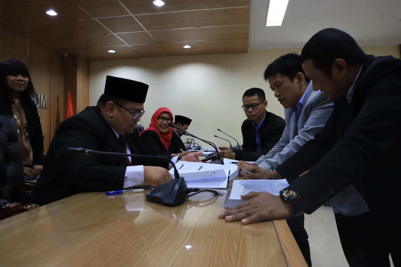 Anggota Majelis Rahmat Bagja (kiri) mengesahkan alat bukti terlapor perkara dugaan pelanggaran administrasi pemilu di Papua disaksikan Ketua Majelis sidang Ratna Dewi Pettalolo (tengah), Rabu 19 Juni 2019/Foto: Jaa Pradana